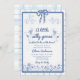 Drawn Silly Goose blue Gingham Ribbon Baby Shower Invitation