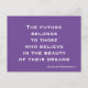 The future belongs to those who believe in the beauty of their dreams - Eleanor Roosevelt. Dream, inspire, encourage, motivational postcard in purple and white