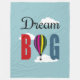 Dream big text design illustration with colourful hot air balloon and cloudy sky decoration. It is possible to change the background colour and to add different one to the design with your choice.