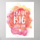 Dream Big Little One Kids watercolor poster pint features fun modern hand written typography. Great art for a kids bedroom or playroom.