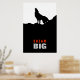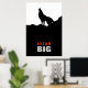 Dream Big Motivational Wolf on Hill Black White Poster