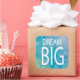 Motivational words concept. Vector illustration of words Dream Big written with handwriting fonts over blurry blue background | Bigstock® - All Rights Reserved.