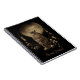 A mystical dream journal with a dream catcher, owl perched on the catcher and a moon with a heard of spirit horses running in it.