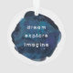Un beau cadeau pour Noël ! Cet ornement qui met en vedette les mots "rêve, explorer, imaginer" sur un orbe céleste abstrait apporte une touche magnifique à n'importe quel arbre. En bleu, gris et blanc.