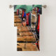 It was advertised as NAVY blue and the color sent was greenish blue. I am disappointed in this product. Quality and printing are great as are all my other orders. As you can see in picture the tea towel on right is perfect, hand towel not so much! Print was awesome and just as ordered