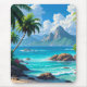 Dream On, tropical beach surrounded by beautiful palm trees, golden sand, and deep blue water.