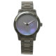Wrist watch with the word 'dream' in solid black capital letters set against a soft black starry night sky amid blue and purple nebula space clouds. Subtle, dark, and deep like the mysterious realm of dreams. Use the text template to add a name or favourite phrase. ♡ Idyllfire