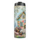 A young girl with colourful flowers in her hair is peacefully sleeping in front of a whimsical house made of various colourful paper scraps. Swirling trees and blooming flowers surround the scene, creating a dreamlike atmosphere. Digital Art