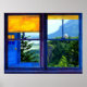 Looking out the "window" at Lookout House at the gateway to the Columbia River Gorge between Oregon and Washington - Oregon side. This is a real view, but no house exists where this window would be located - it is, instead, the Women's Park, a turnout with a telescope and a tremendous view. Mixed media, tempera, photography.