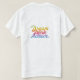 A vibrant t-shirt design featuring the words "Dream Work Achieve" in a playful, handwritten font. Each word is a different pastel colour with a slight outline, giving it a vintage feel.