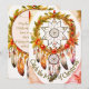 Infuse your holiday greetings with the enchanting charm of a dreamcatcher! This unique Christmas greeting card features a wreath shaped like a dreamcatcher, adorned with vibrant red hollies, radiant red Christmas flowers, gleaming ornaments, and lush green winter leaves twined gracefully around a rustic brown vine. At its heart is a starlike flower set within a delicate circular dreamcatcher web, exuding magical charm. The design is completed with dangling beads and feathers in teal, brown, and muted lavender tones for a whimsical boho touch.