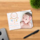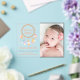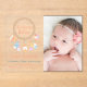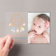 Bohemian tribal dreamcatcher loop with beads and feathers in pastel colours. Gender neutral baby birth announcement card, can be used for either a boy or a girl. Customize with your baby photo and information.