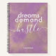 This modern design features faux gold dust sparkle over a purple background with the text "Dreams Demand Hustle" in modern typography with your personalized name below. Personalize by editing the text in the text box provided.