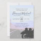 A motorcycle with two helmets sits against a dusky sunset background on this wedding invitation for the biker couple. It can be easily customized to suit your own needs.