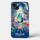 This dreamy boho iphone case features a large tear-shaped crystal with a beautiful blend of aquamarine and turquoise colours. A navy blue background, delicate foliage, hanging crystals and a dream catcher safeguard your phone with a touch of magic. Personalized with your name, this enchanting case lets your carry a touch of nature in your pocket!