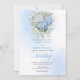 Set the tone for a stylish and unforgettable celebration with this watercolor blue and gold wedding invitation, designed around today’s most trendy wedding color palette. Featuring soft pastel, powder, light, and pale blue hydrangeas, paired with fresh eucalyptus greenery and elegant gold floral accents, this design captures modern romance with timeless appeal.