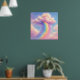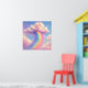 Artwork of a cloud with a rainbow pouring out of it in a pastel painting style. This design re-imagines the classic rainbow icon into something truly special. This whimsical illustration features a fluffy, marshmallow-soft cloud in dreamy shades of pink and lilac. A vibrant rainbow cascades down like a waterfall, sprinkling dust and sparkles into the sky. The soft, pastel palette of baby blues, violets, and warm yellows creates a calming yet cheerful atmosphere, making it the perfect addition to a nursery, playroom, or kid's bedroom.