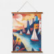 Escape to a picturesque coastal village with this dreamy illustration featuring sailboats gliding along a tranquil river under a vibrant sky. The colourful buildings and lush surroundings create a serene yet playful atmosphere, perfect for adding a touch of whimsy and charm to your decor. Ideal for fans of coastal landscapes, whimsical art, and imaginative designs.