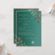 This chic wedding invitation card comes in different sizes, shapes and papers. Celebrate your dreamy elegant love with this exquisite wedding card. The emerald green glamourous glitter background and the sage green foliage of eucalyptus set the stage for a truly remarkable vintage boho chic celebration. Personalize with your unique intro, occasion details, names or monograms, date, time, location, RSVP, and additional information. Create an unforgettable experience that reflects your unique bond. Hobinishop