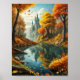 Dreamy fall landscape with magic castle and river poster