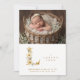 Dreamy Romantic Floral L Initial in Gold Glitter Effect for Newborn Photo Announcement Card Design.
