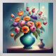 This AI-generated design features a vibrant, dreamy floral arrangement in a vase, with a second small, empty vase placed beside it. The bold, surreal colours of the flowers contrast beautifully with the subtle lighting, creating a whimsical, otherworldly atmosphere. The empty vase adds a sense of calm balance to the composition, enhancing the modern, vibrant feel of the piece. Perfect for contemporary spaces, this design brings energy, elegance, and a touch of mystery to any room.