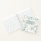 Delicate, foliage arrangements with small flower accents in soft, dreamy shades of green, gold and dusty blue with splashed of glitter, form the background pattern for this elegant notebook design. A signpost-shaped label provides a spot for your name and/or title. See ID817 to see additional products with design, including matching wedding stationery.