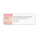 Address labels with a lovely charming illustration. Pastel colours of pink and peach. Landscape scene with planets, mountains and clouds.
