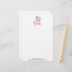 Stationery with a yummy pink cupcake with scrumptious swirls of pink frosting with a yellow cupcake holder. A raspberry with stem and leaves on top. Dreamy and delicious. Text says Yum in a fancy trendy font. Set on a pastel pink backdrop.