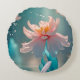 Dreamy Pink Lotus and Butterfly in Aqua Water Round Pillow