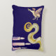 This rectangular pillow stands as the central piece of the dreamy nightstand set, designed with a deep evening blue background that anchors the entire composition. Across its surface, delicate collage-inspired illustrations unfold as symbolic fragments, rendered in soft opalescent and pastel tones that evoke a subtle celestial narrative.