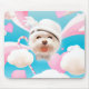Dreamy Sky Puppy: Smiling Bichon with Hat & Clouds Mouse Pad