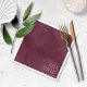 Delicate, foliage arrangements with small flower accents in soft, dreamy shades of cream, taupe and rose with splashes of burgundy glitter and unique design layouts make this an exciting collection, especially for autumn weddings. The coordinating wedding table napkin shown here features a deep burgundy, watercolor texture with waves of rose. Add your names and wedding date using the provided template. View the collection link on this page to see all of the matching items in this beautiful design or search ID817 to see other pieces and colour choices for this set.