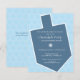 Dreidels are part of the Hanukkah fun so show that with this Hanukkah invitation. A cobalt blue dreidel takes up most of the invitation's front against a subtle Star of David blue background. All your customized party information goes inside the dreidel. Available in alternate colours with matching products.