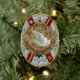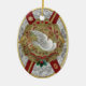This Old World European-style ornament graces your holiday tree with royal style. The background image of intricately patterned Normandy lace wrapped with princely military-style uniform ribbon sashes, the image of a gold foil paper Dresden wreath, bejeweled and with golden accents, and the Dove of Peace unite to create a charming and stately visual. This digital layered design was created by placing many individual adornments meticulously by hand (or mouse?). The reverse side is equally opulent. It is customizable with the year, a personalized greeting, and personal name (or family name) to create a unique gift or family keepsake. Check out all of our 'Dresden Christmas' ornate gifts and holiday home decorations from Cheeky_Poppets!