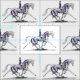 This montage artwork in a Dressage Horse theme was created by artist Kelli Swan. The drawing illustrates collected (piaffe) and extended trot movements. The original black and white pastel drawing has been hand-tinted with colour details to create this final look. The artwork is titled "Trot On". Kelli Swan specializes in the beautiful and striking effect of black and white pencil drawing. Her detailed illustrations depicting a variety of themes have won many awards in prestigious juried art shows. She offers custom portraits and designs as well. Please message her with any questions.