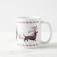 Flower crowned purple dachshunds in purple watercolor parade confidently around this purple leaf rimmed classic mug. The image is transparent so the background color can be customized.