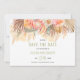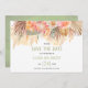 Tropical dried palm leaves, pampas grass and protea flowers sage green botanical Save the Date flat card. This lovely wedding design a garland of dried palm leaves, protea flowers and pampas grass.