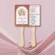 Tropical dried palm leaves, pampas grass and protea flowers terracotta arch botanical wedding hand fan program. This lovely wedding design features an arch frame on terracotta stained background. In the frame there is a bouquet of dried palm leaves, protea flowers and pampas grass.