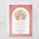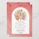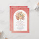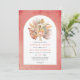 Tropical dried palm leaves, pampas grass and protea flowers pink arch wedding invitation. This lovely wedding design features an arch frame on pink stained background. In the frame there is a bouquet of dried palm leaves, protea flowers and pampas grass.
