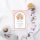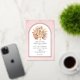 Soft blush pink arch real rose gold foil wedding invitation with tropical dried palm leaves, pampas grass and protea flowers. A rose gold foil arch frame is placed on a soft pink stained background. A bouquet of dried palm leaves, protea flowers and pampas grass is displayed in the frame.