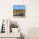 This wall clock features driftwood and a very colourful salt water marsh at Hammonasset Beach in Madison, Connecticut. The red succulent plants in the marsh are strikingly beautiful in late summer and early fall.