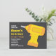 This invitation comes with a yellow and orange toy drill over a black grey background. Great for kids, especially boys who love handyman tools and likes to build and construct their own things. Personalize easily with your party details.
