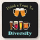 A fun beer drinkers design with two raised mug of beer with the text "Drink A Toast To" and below a diverse collection of different glasses of beer and the word "Diversity".