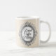 Festive coffee mug with a victorian silver photo frame adorned with a silver grey leaves wreath on an ivory background and the text "Drink Coffee and be Merry" in modern typography. Simply add your own photo to personalize this chic coffee mug. For the best results make sure the photograph is in a 5 x 7 portrait format and the subject is centred. Other matching products such as invitations, stickers and party supplies are available in our store. If you need any help please contact us through our store.