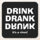 Drink Drank Drunk - It's A Virus on Black Square Paper Coaster