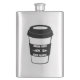 The product is a good size and came exactly as it was pictured. The lid is not attached to the flask, which could be dangerous on drunken nights... The print came out surprisingly well and looks very sharp. Would definitely recommend.