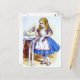 Alice in Wonderland vintage illustration. Alice stands at the table with the key and holds the bottle in her hand that reads, "Drink Me".