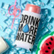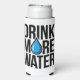 DRINK MORE WATER with a blue drop icon Seltzer Can Cooler