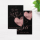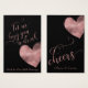 The background of this elegant drink ticket can become any colour you choose. In an elaborate script font, the words "let us buy you a drink" appear on the front of this modern drink ticket. The beautiful text has been embellished with a rose gold faux-foil effect. "Good for One Adult Beverage" was added as an editable text field in a complementary serif font at the bottom. Use any other words you like if you want to change the copy. On the back the beautiful graphic text overlay reads "cheers" and a template place holder was added for your names. On both sides a matching, asymmetrical, rose gold heart peeks in from the edge. The editable background is black in this example; change it to any colour you prefer. All layers are unlocked so you can resize or re-position any part of this card that you like, should you want to tweak the design. Please do not hesitate to reach out if you have requests or need customizing assistance.